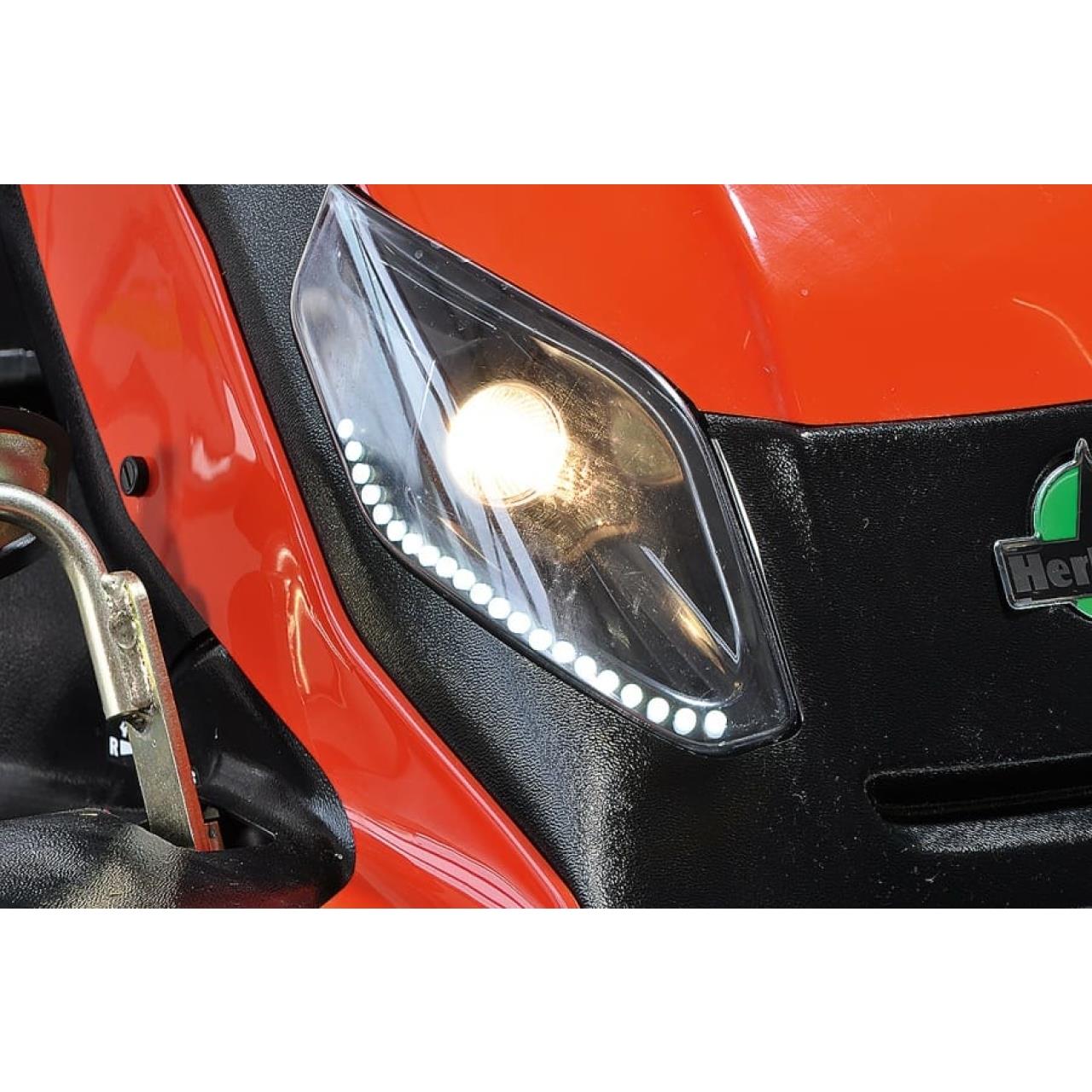 Als besonders stabile Version der bewährten Herkules HXT-Mäher ist der HXT 110 23 4WD mit verstärktem Überrollbügel, zusätzlichem Rammschutz und solidem Hochgrasdeck ausgestattet. Der serienmäßige Allradantrieb und die griffigen Ackerstollenreifen bringen den Mäher sicher durch unwegsames Gelände und extensiv gepflegte Hochgrasflächen. Der Mäher ist optimiert für den professionellen Dauereinsatz. Komplette Beleuchtung mit LED-Tagfahrlicht, Tuff Torq K664 Profigetriebe, Komfortsitz mit Sicherheitsgurt, robustes Hochgrasdeck mit 110cm Schnittbreite und der durchzugsstarke 2-Zylinder-Vanguard Motor sind nur einige Bestandteile der kompletten Profiausstattung.